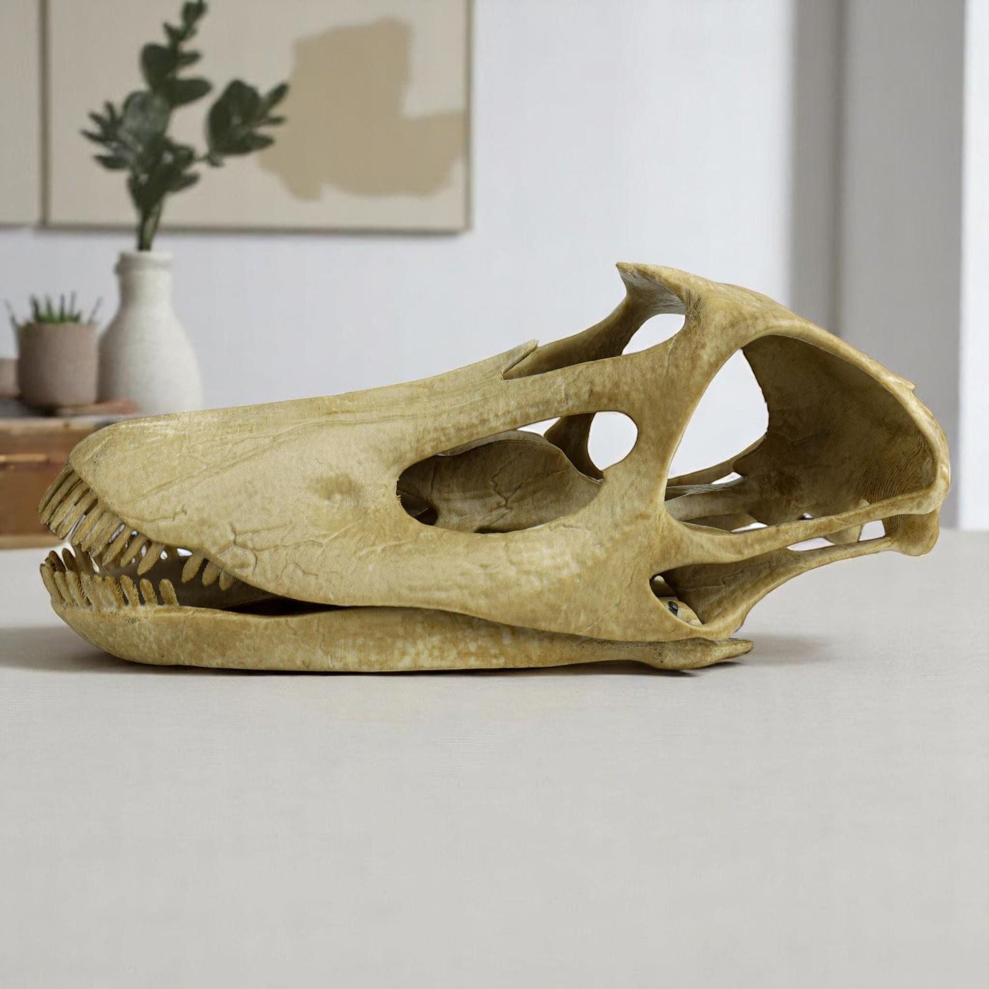 Bring the awe-inspiring world of dinosaurs into your home with this beautifully hand painted Diplodocus Skull replica. Handcrafted with stunning attention to detail, this fossil-inspired piece features realistic textures and finishes that capture the raw beauty of prehistoric times. Ideal for collectors, paleontology enthusiasts, or anyone who appreciates unique, educational home decor. Whether displayed on a bookshelf, desk, or as a striking focal point in your living room, this Diplodocus skull adds a touch of ancient wonder to any space. The perfect gift for dinosaur lovers, history buffs, or fans of natural history.