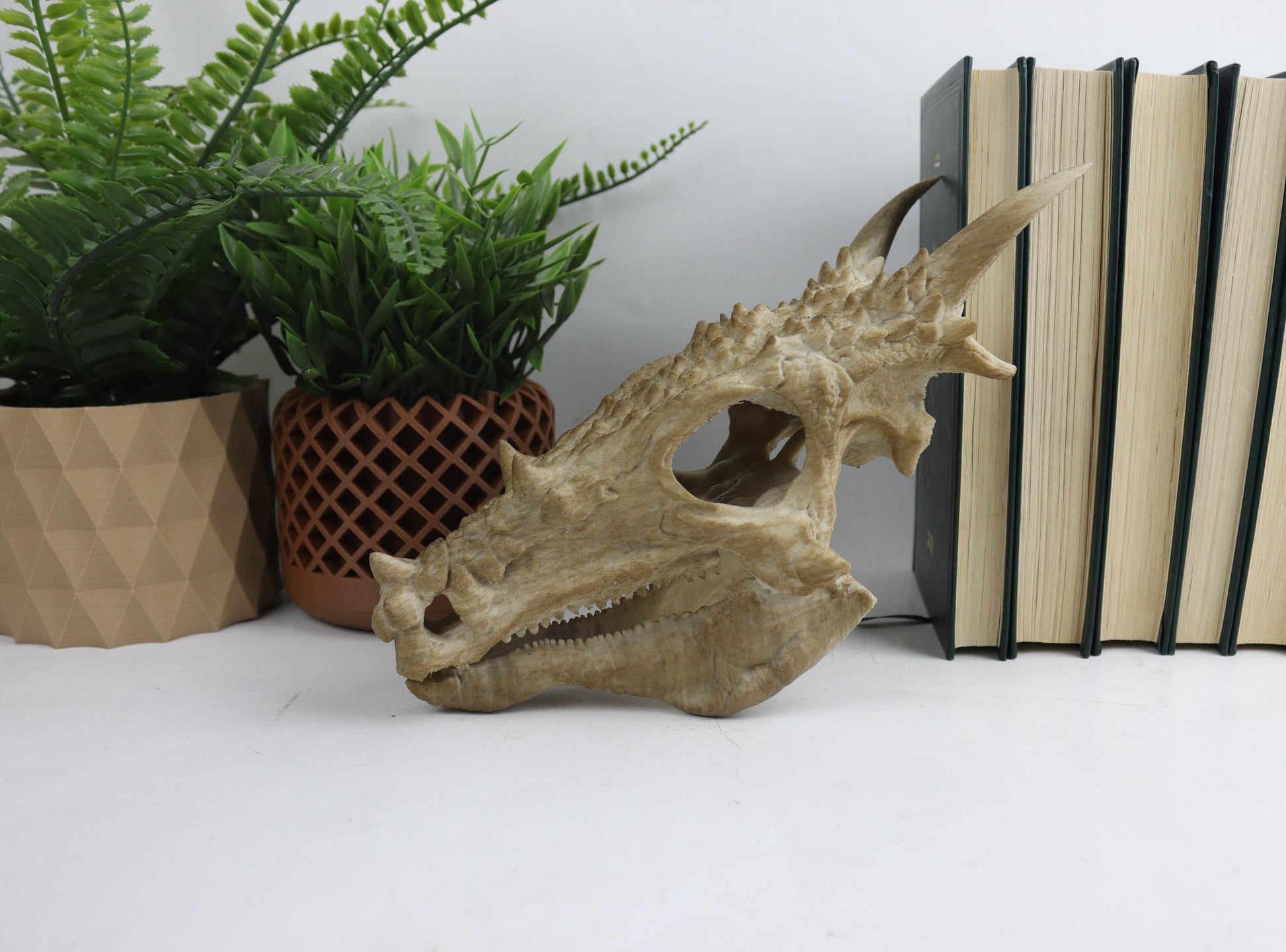 Bring the awe-inspiring world of dinosaurs into your home with this beautifully crafted Aged Dracorex Skull replica. Handcrafted with stunning attention to detail, this fossil-inspired piece features realistic textures and finishes that capture the raw beauty of prehistoric times. Ideal for collectors, paleontology enthusiasts, or anyone who appreciates unique, educational home decor. Whether displayed on a bookshelf, desk, or as a striking focal point in your living room, this Dracorex skull adds a touch of ancient wonder to any space. The perfect gift for dinosaur lovers, history buffs, or fans of natural history.