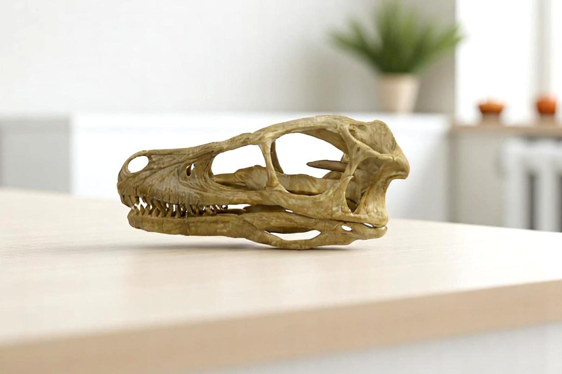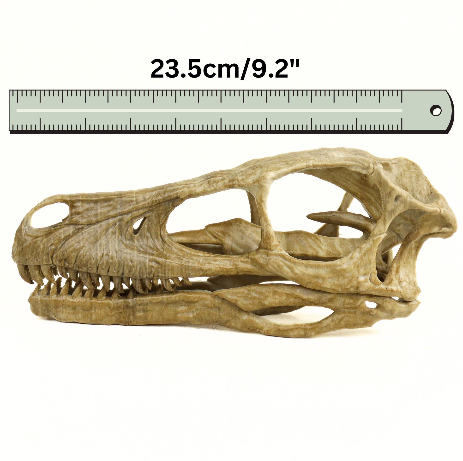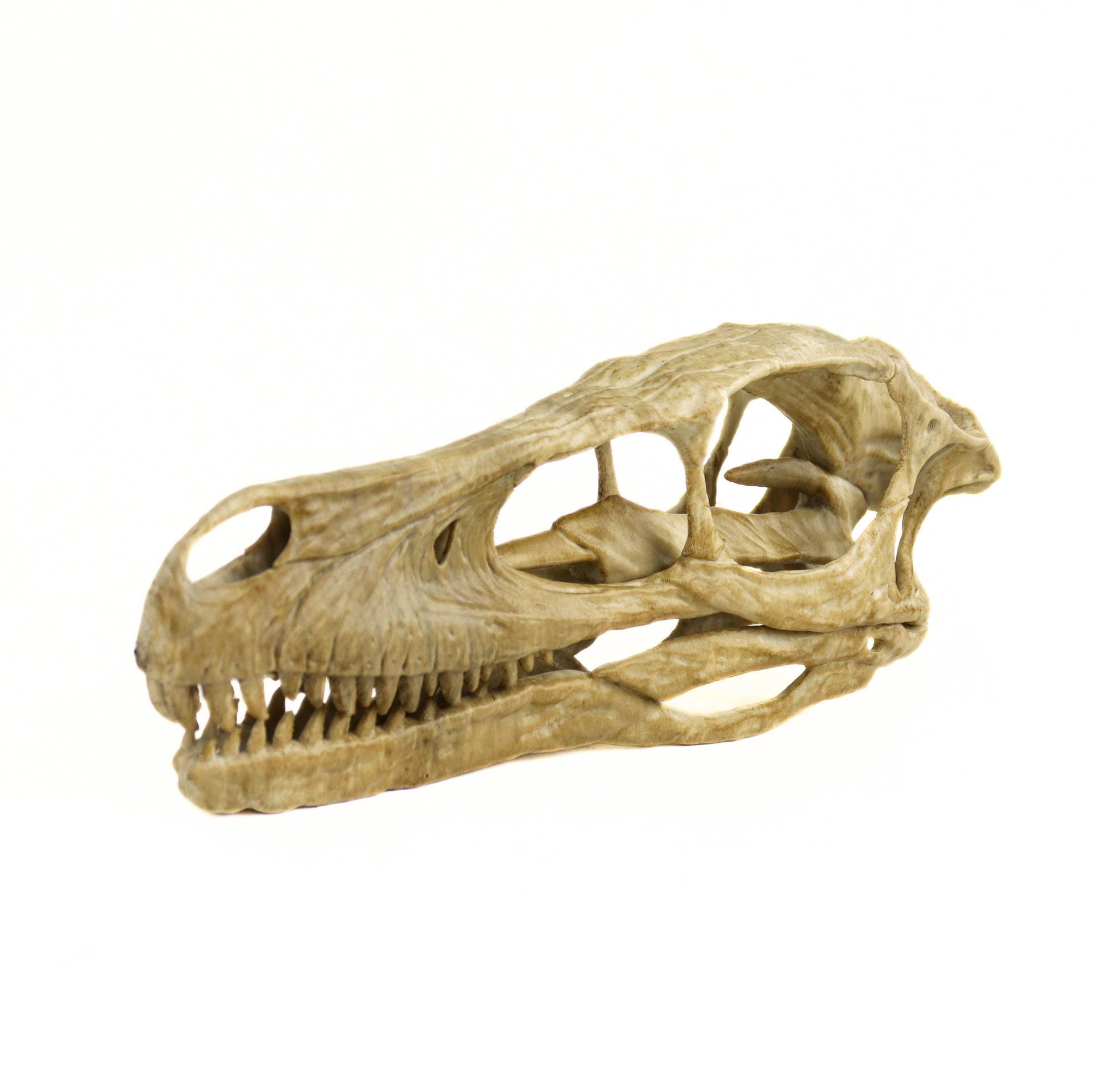 Aged Velociraptor Skull Replica, Perfect for Dinosaur Enthusiasts and Home Decor