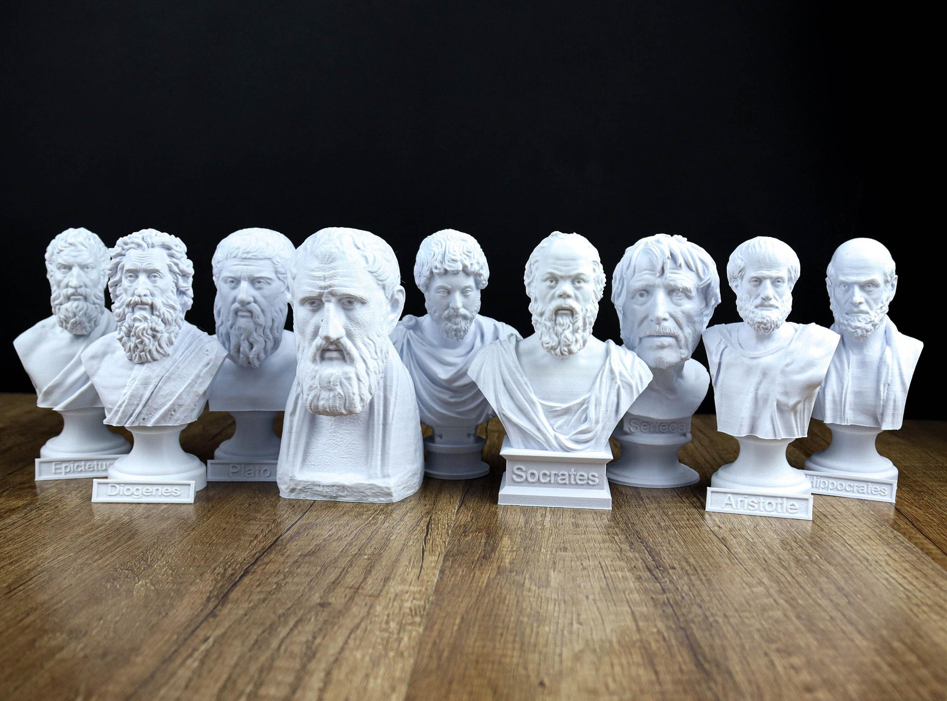 Value pack of some of the most famous Greek/Roman philosophers. You can purchase a set of 3, 5 or 7 busts. If you are interested in one bust, please browse through my shop and you will find the individual listing.(use the search button). Select the size and how many busts you want in the collection. 3d printed in PLA Plastic. All of my products are made with an eco-friendly material made from corn. Organic, renewable and entirely biodegradable. The busts are not mass produced products. Each one is individually made to order in my workshop. I check all items carefully by hand. All busts can be made in different color and in different sizes. Please chose your option for the drop-down menu. ✯✯✯✯✯✯✯✯ Shipping We are located in Romania and we ship worldwide. Transit times: ✯ Delivery time to EU: 7-13 business days* (shipping with the local couriers, delivery companies require a phone number to contact you for delivery, please provide a phone number as a note or as a private message) ✯ Delivery time to USA: 4-7business days* (shipping with DHL/Fedex please provide a phone number as a note or as a prive message) ✯Delivery time to the UK 7-13 business days* (shipping with the Royal Mail) ✯Delivery time to the Canada 4-20 business days (shipping with DHL or Post Office) ✯Delivery time to the rest of the world 10-20 business days (shipping with the Post Office) * Weekends and national holidays are not considered business days Thank you so much for your visit! Please feel free to contact me for any question or if you need more pictures of the item