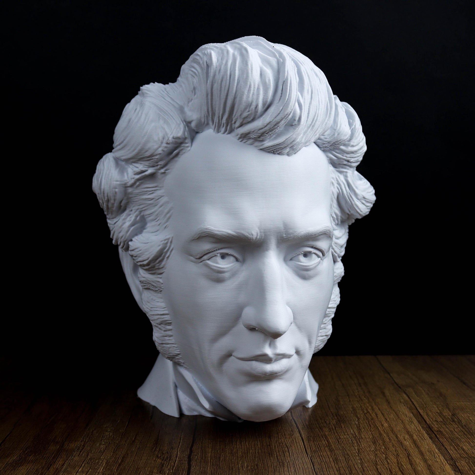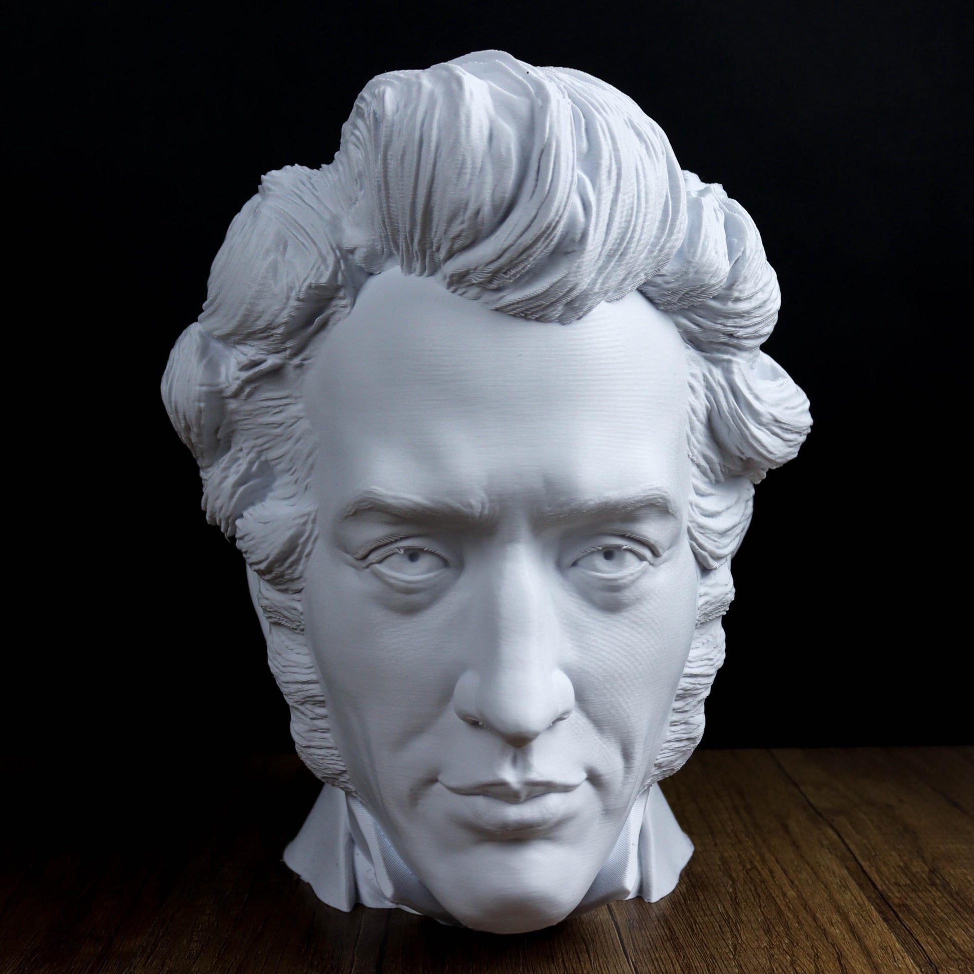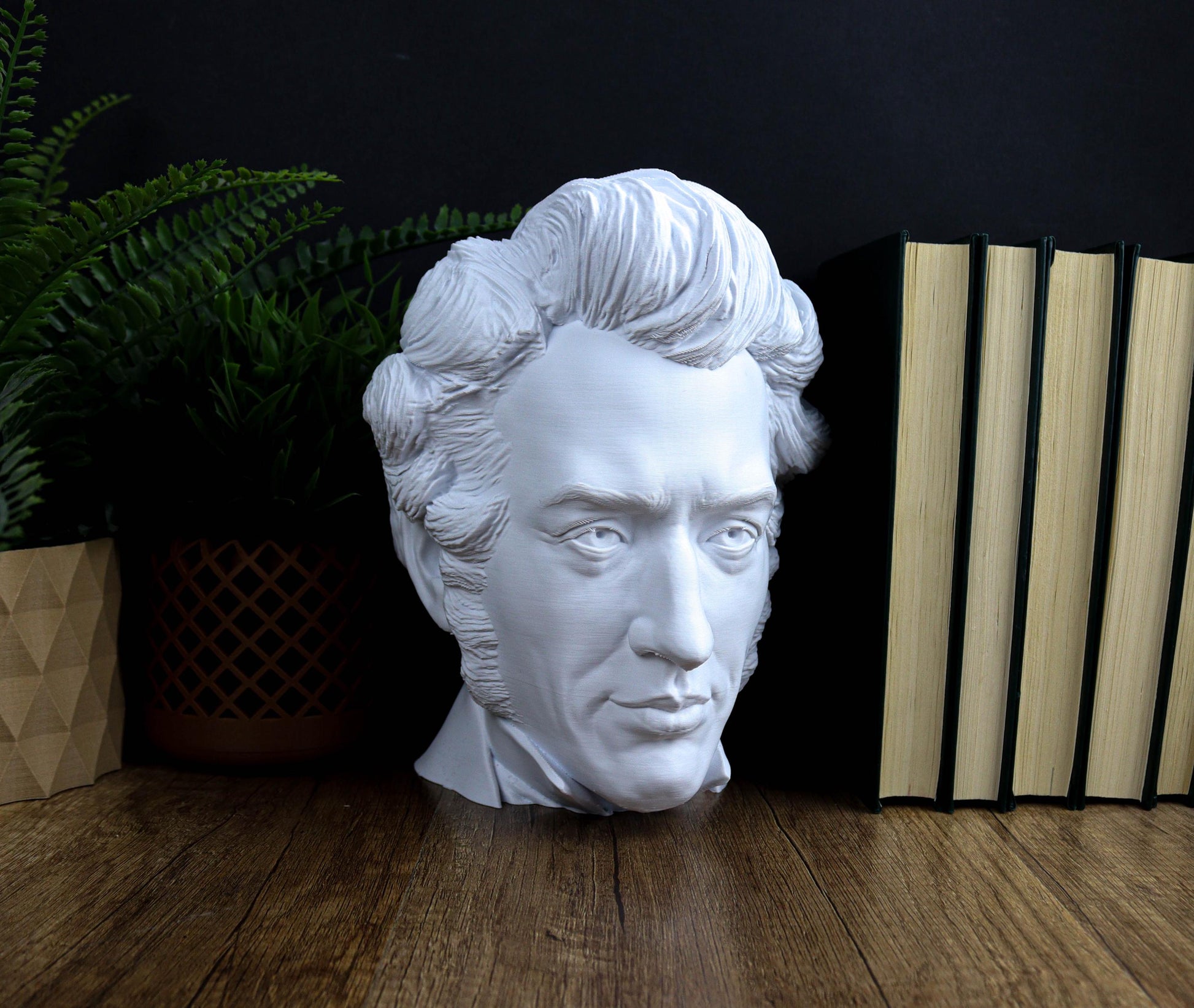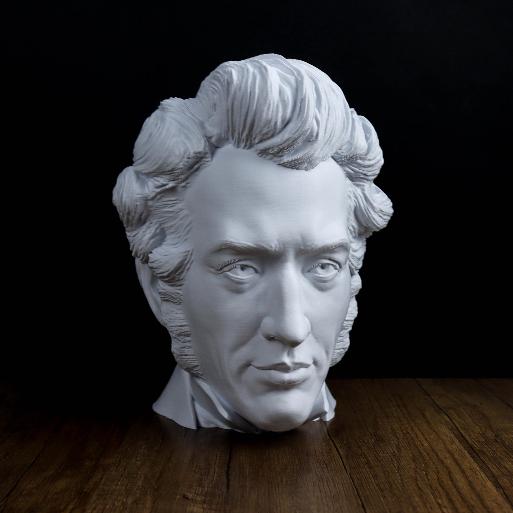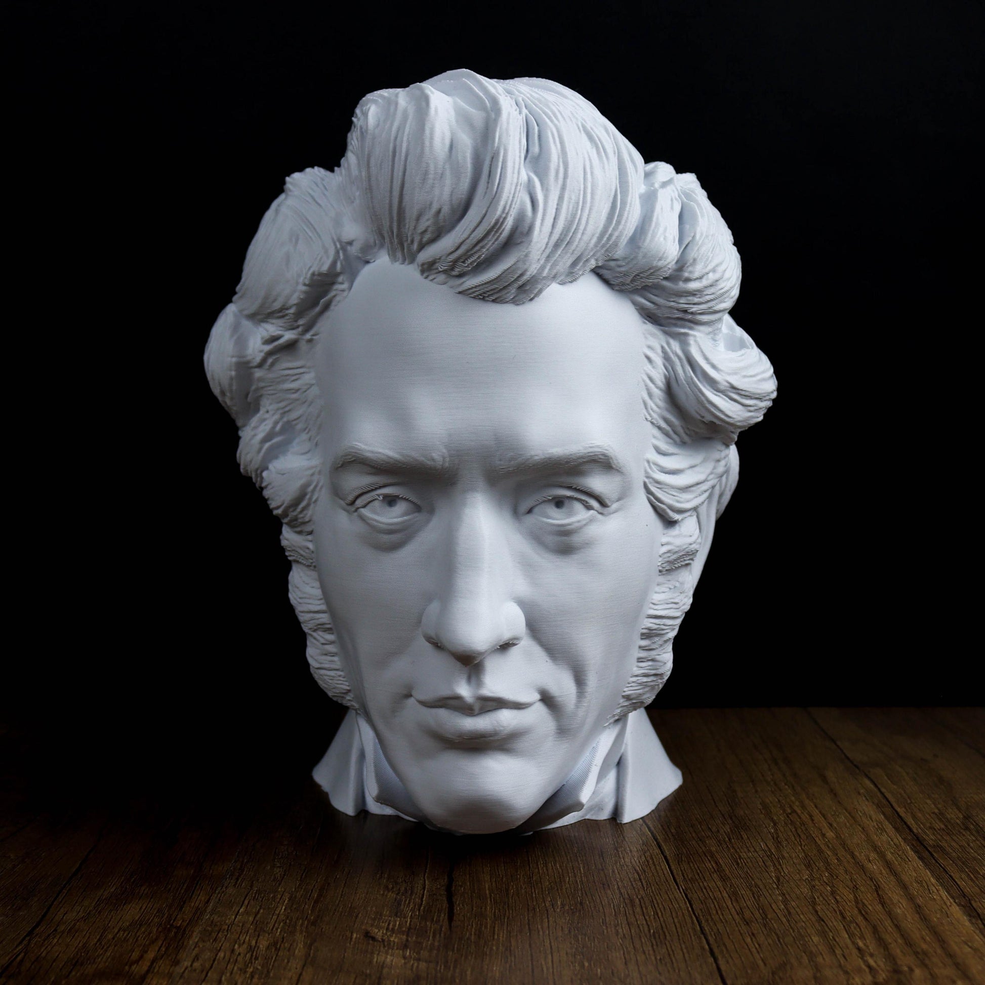 This bust of Søren Kierkegaard offers a quiet tribute to the philosopher known for his deep thoughts on existence, faith, and individuality. With its simple elegance, it’s a nod to his lasting influence on philosophy and existential thought. A meaningful piece for anyone drawn to his work and ideas.