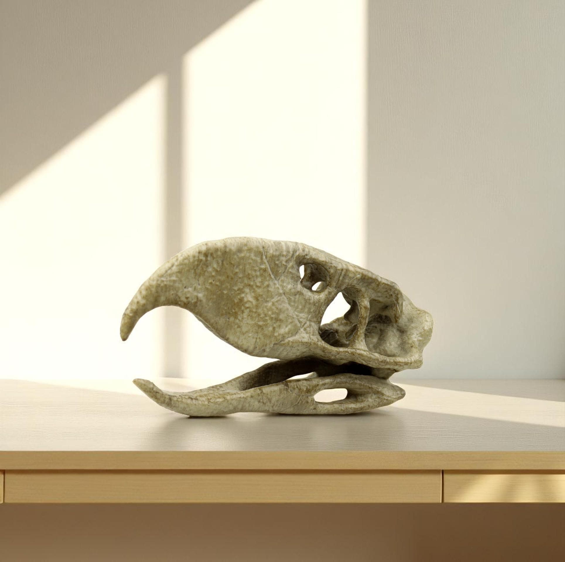 Aged Phorusrhacos Skull Replica, Perfect for Dinosaur Enthusiasts and Home Decor